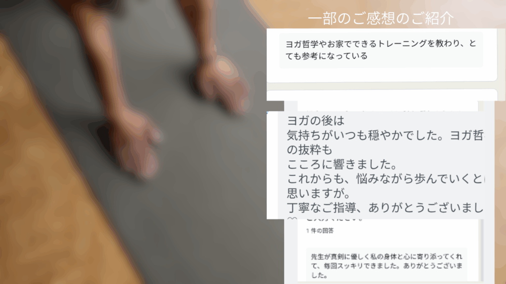 個別対応のヨガセッションを通して、ストレスの軽減や免疫力の向上など、